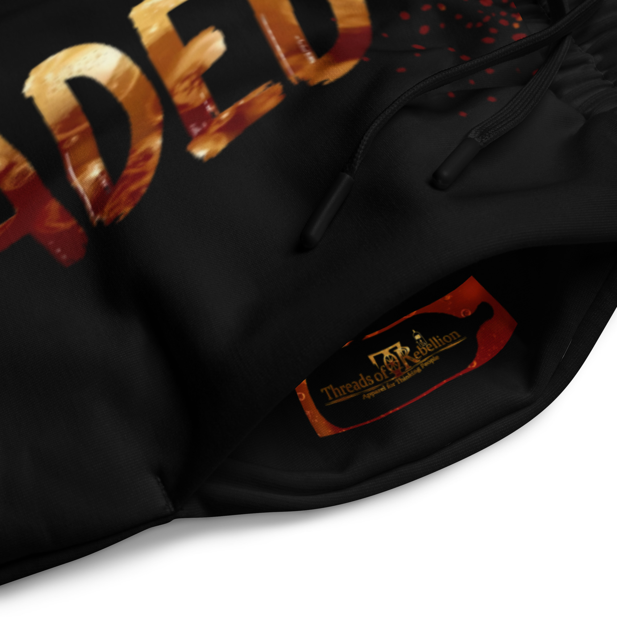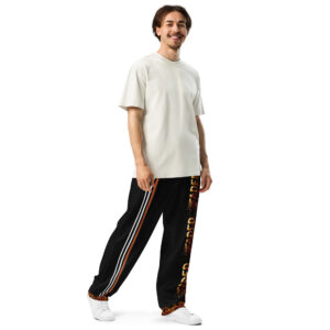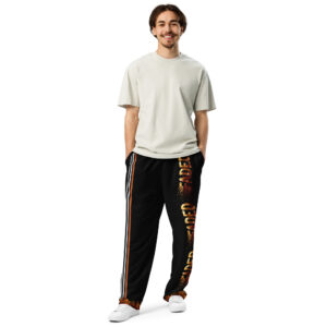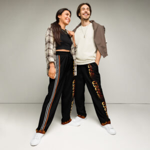 Comfort meets mind altering fashion style with these liquor inspired, wide-leg pants. Ideal for athletics, lounging around, or casual outings, these joggers come equipped with handy side pockets and are made almost entirely from recycled materials.