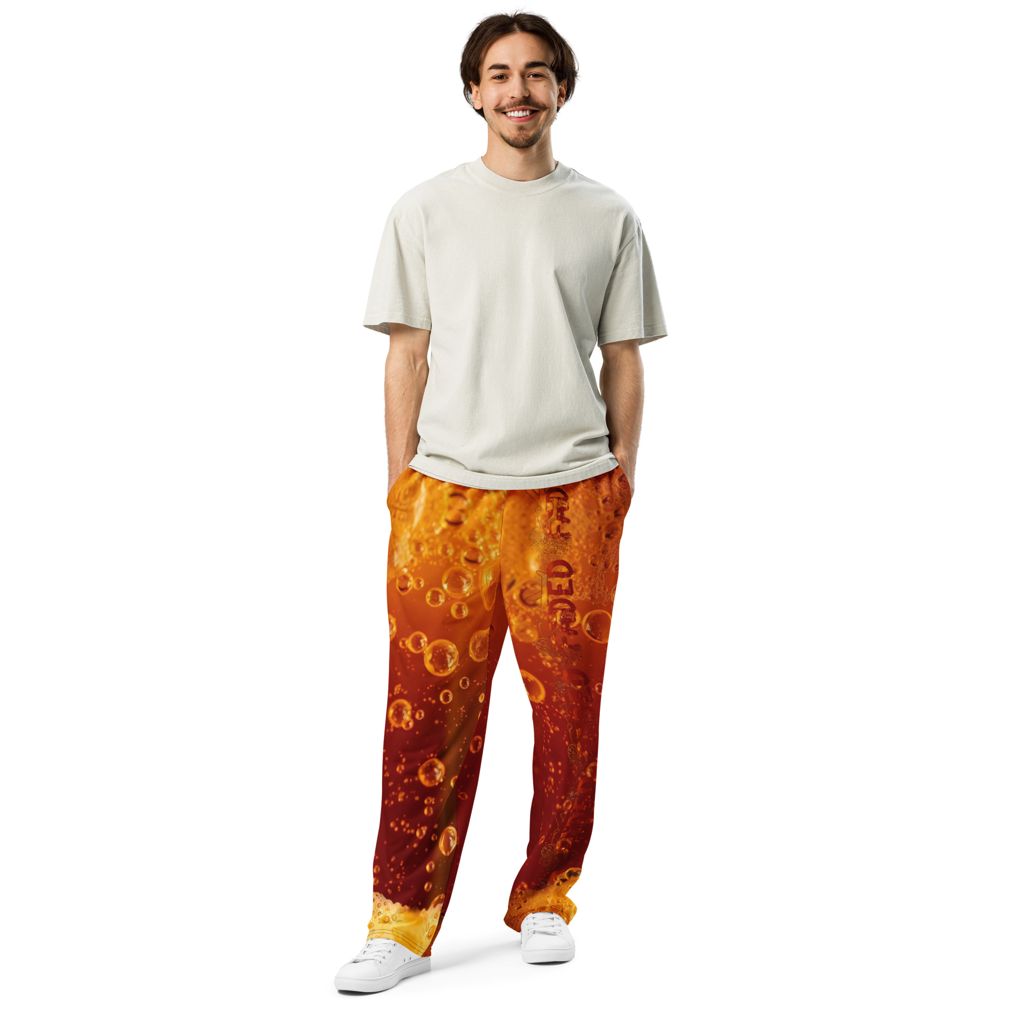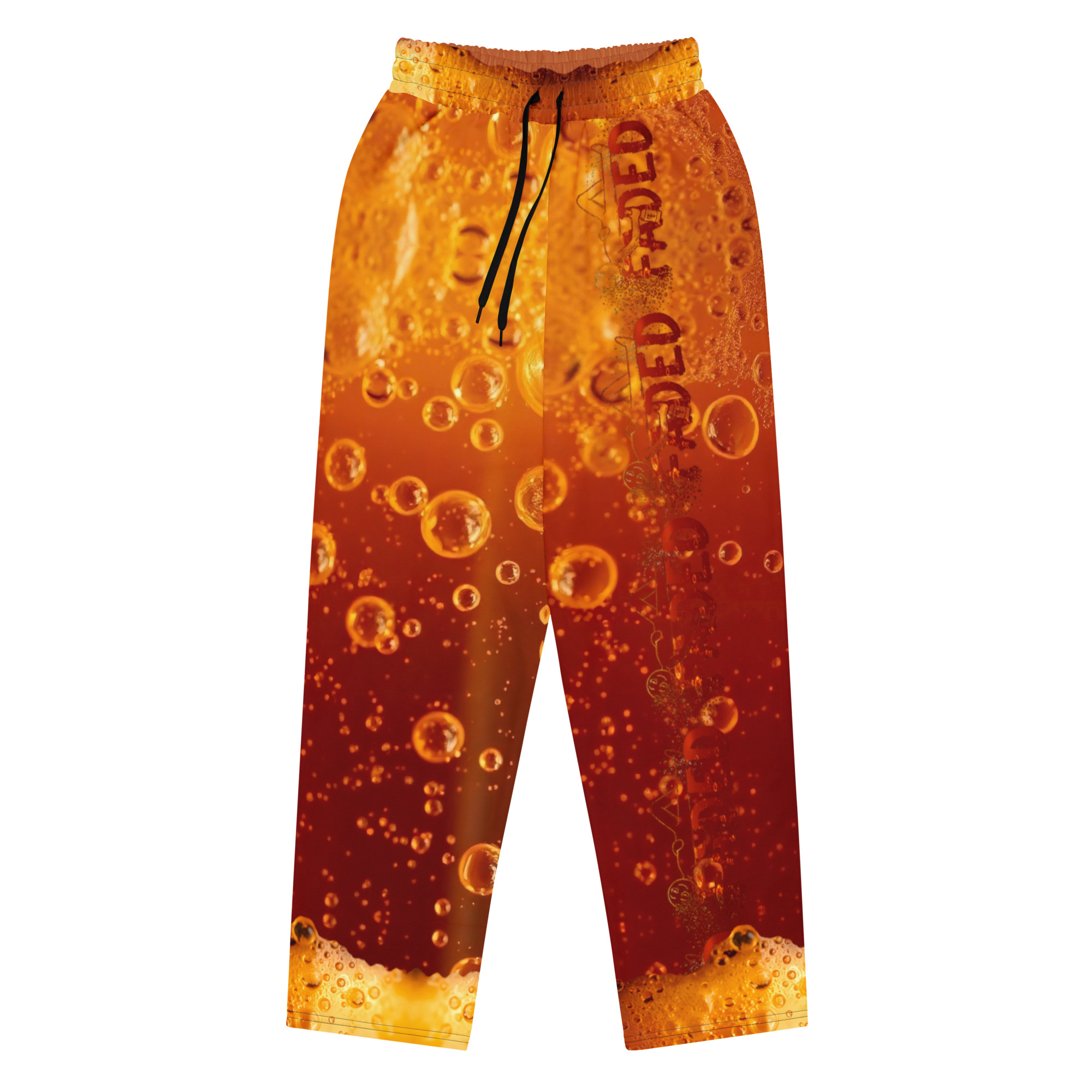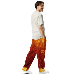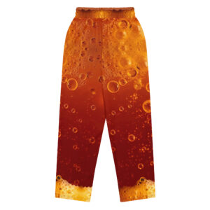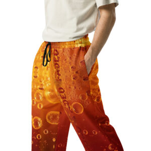 Comfort meets mind altering fashion style with these liquor inspired, wide-leg pants. Ideal for athletics, lounging around, or casual outings, these joggers come equipped with handy side pockets and are made almost entirely from recycled materials.