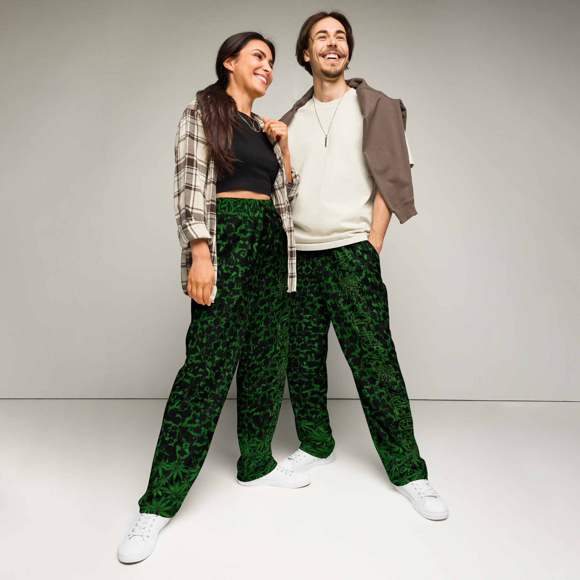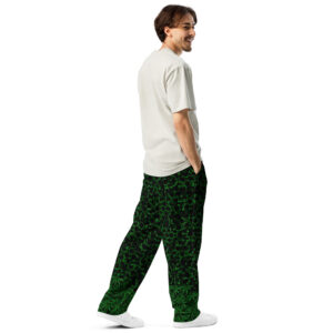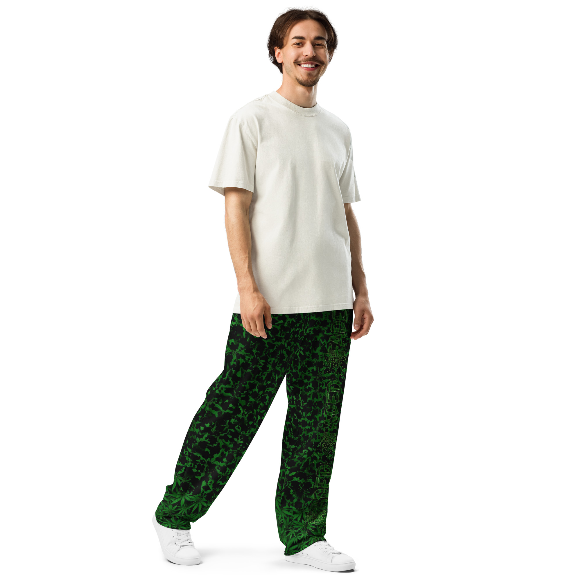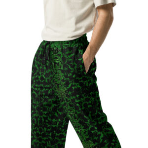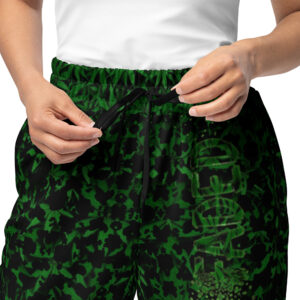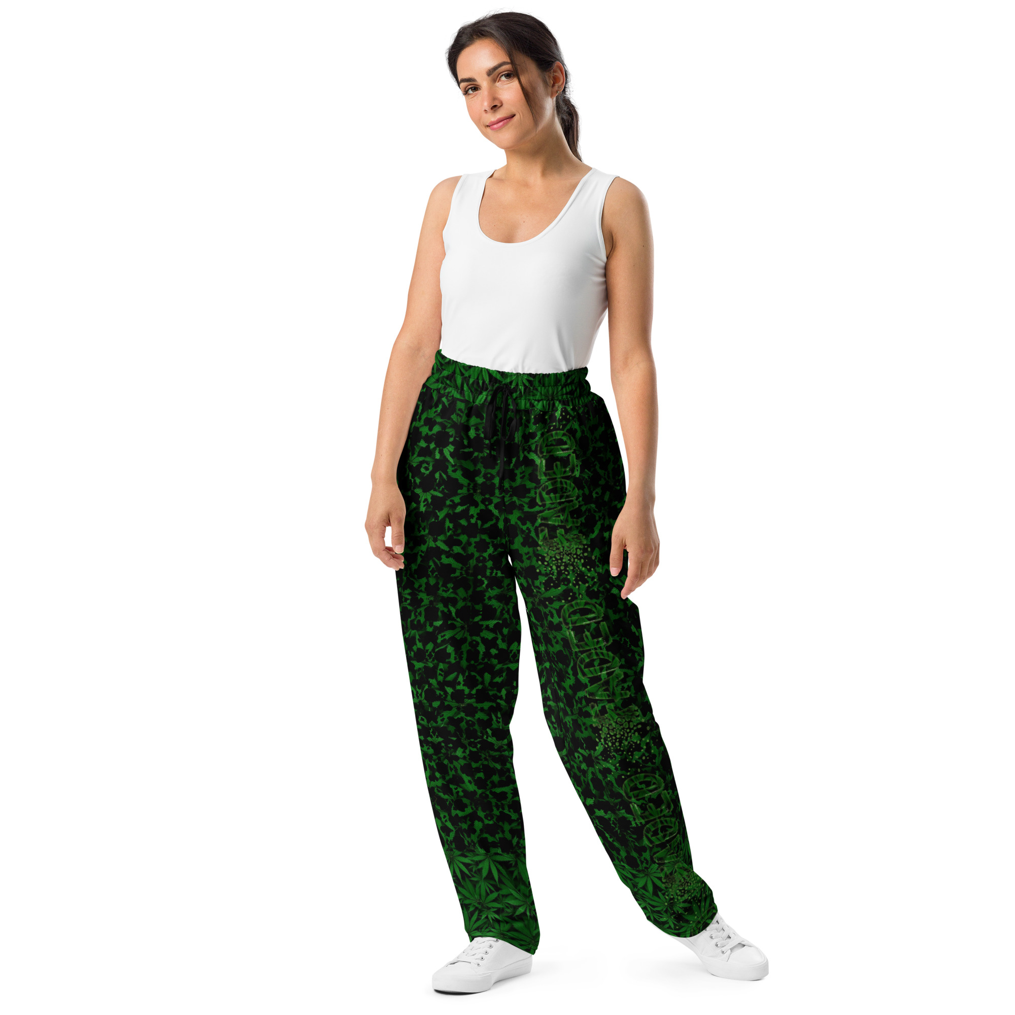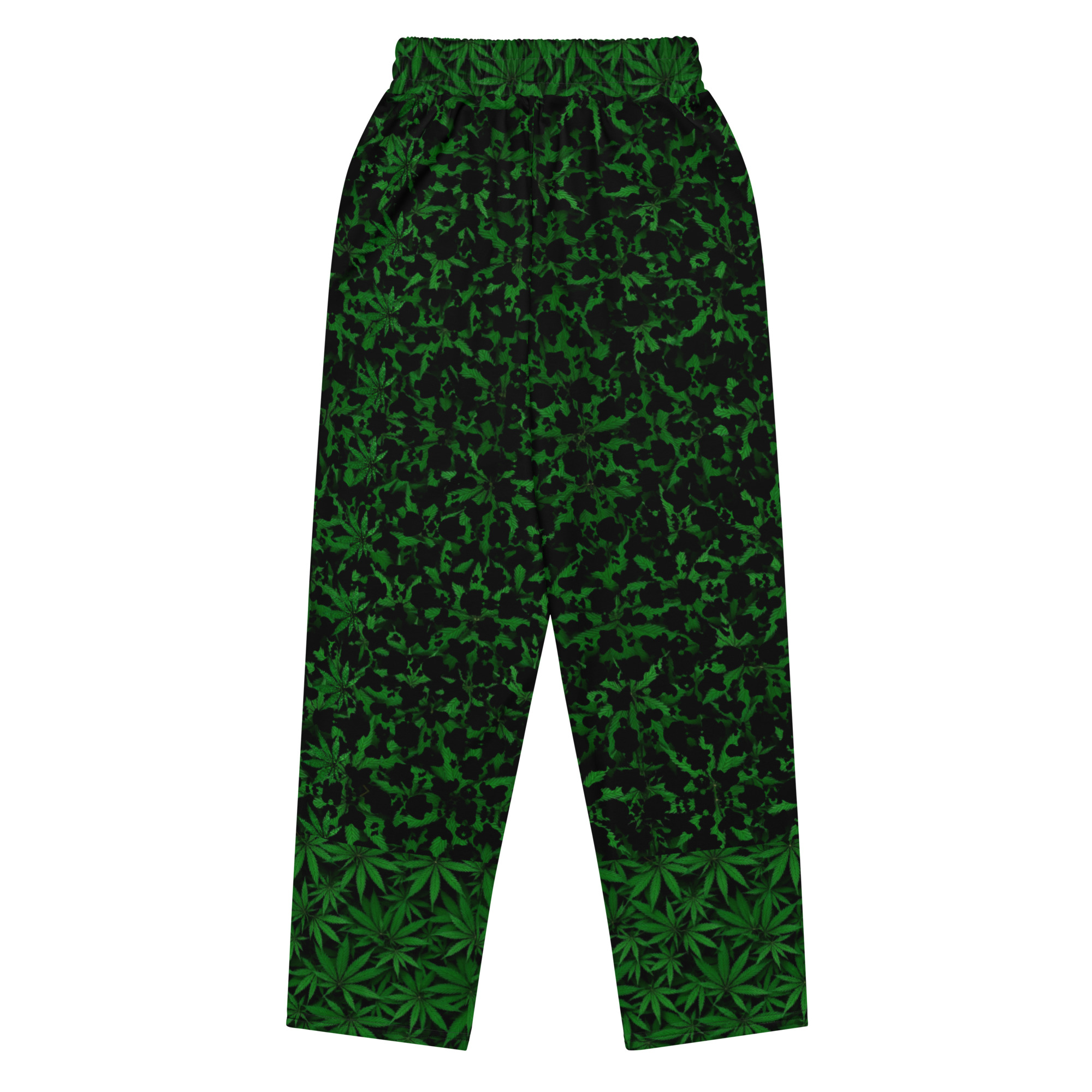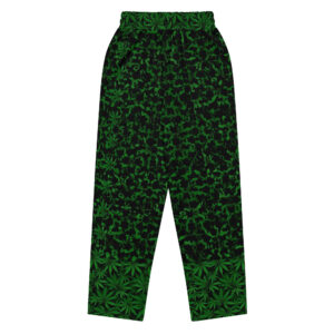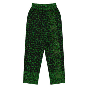 Comfort meets mind altering fashion style with these herbally inspired, wide-leg pants. Ideal for athletics, lounging around, or casual outings, these joggers come equipped with handy side pockets and are made almost entirely from recycled materials.