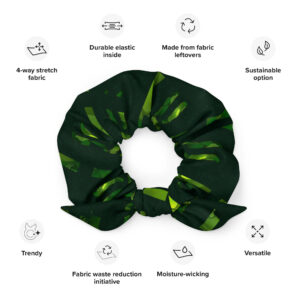 Whether you’re simply looking to tuck back your hair, or purposefully accessorizing your outfit, this stylish scrunchie is a handy little helper and, since it’s made from mostly recycled materials, it’s helpful to the planet as well!