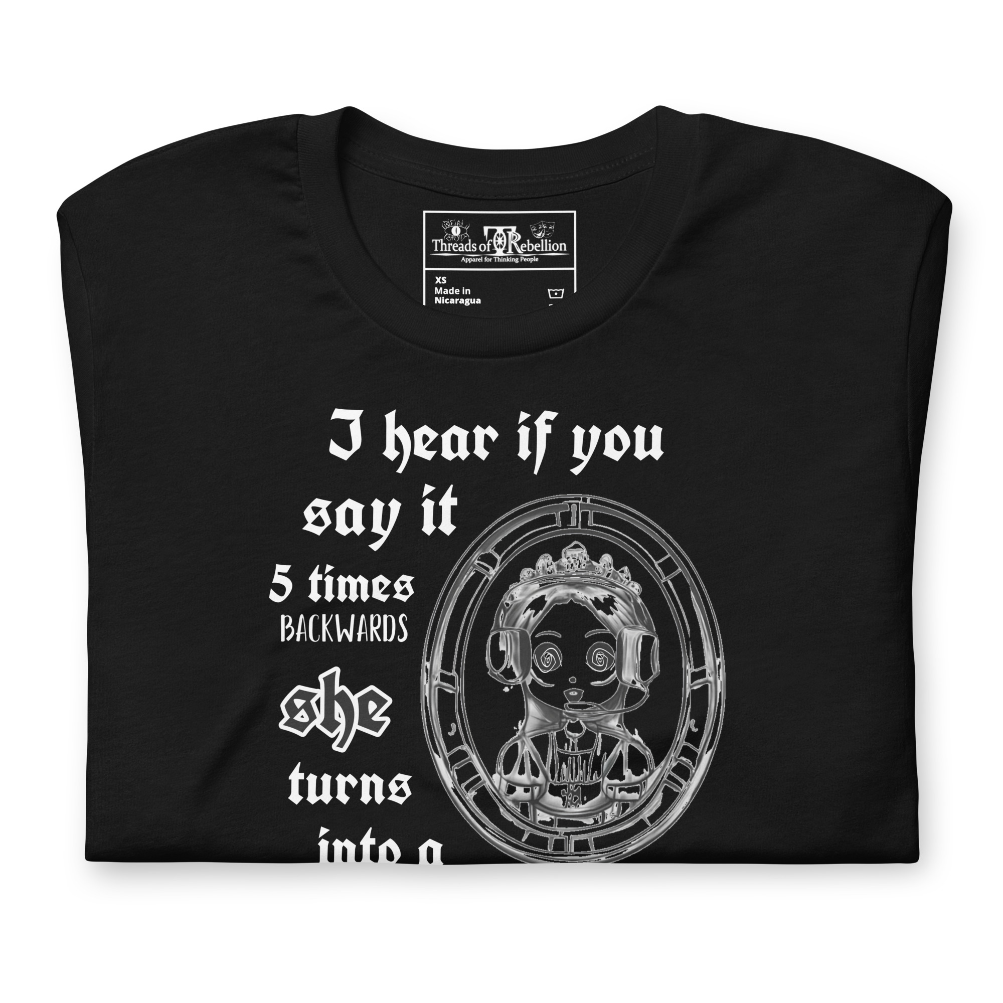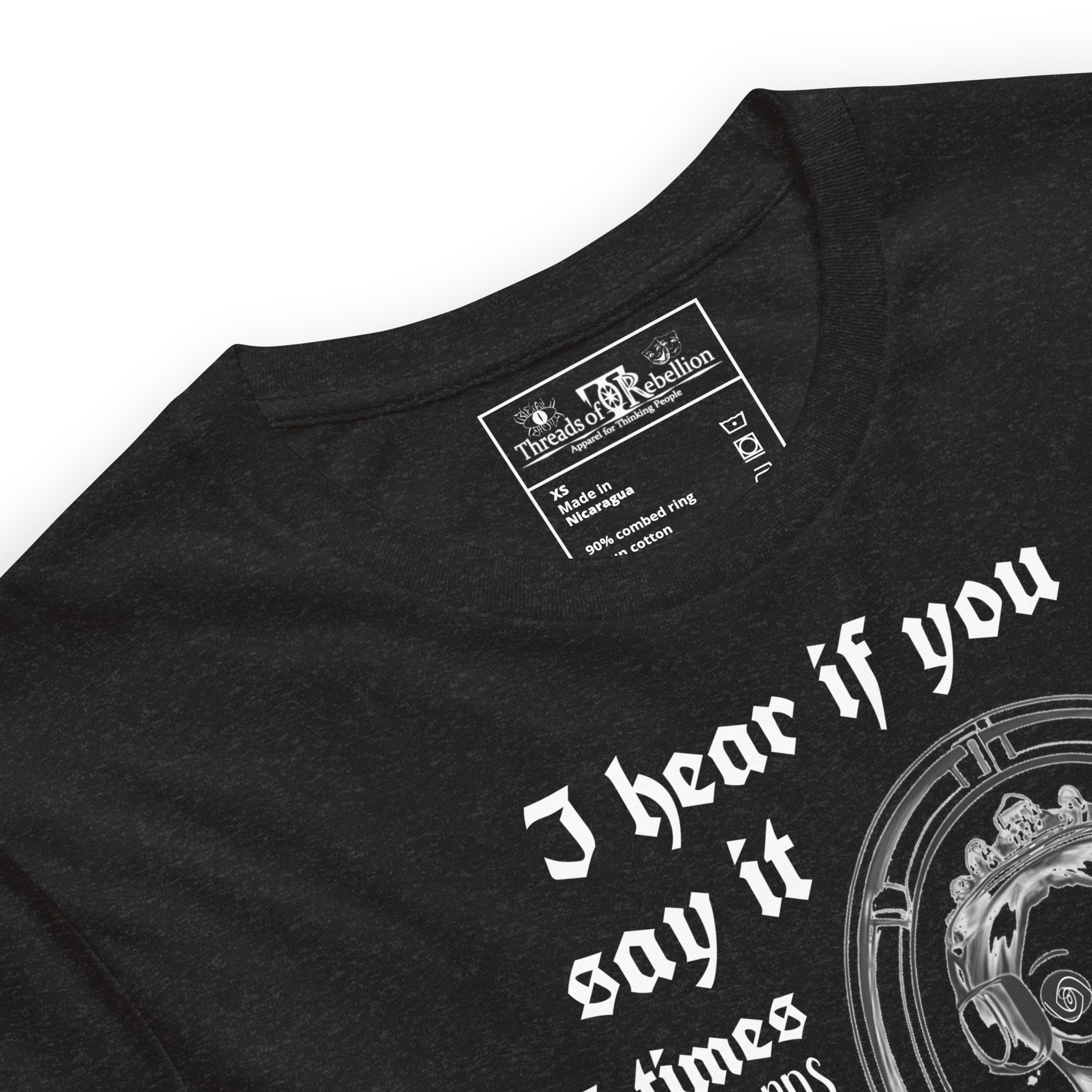 Whether whimsy, or warning, enjoy making a statement in stylish comfort. This tee’s soft feel and lightweight construction offers a form of unique expression that balances style and relaxation.