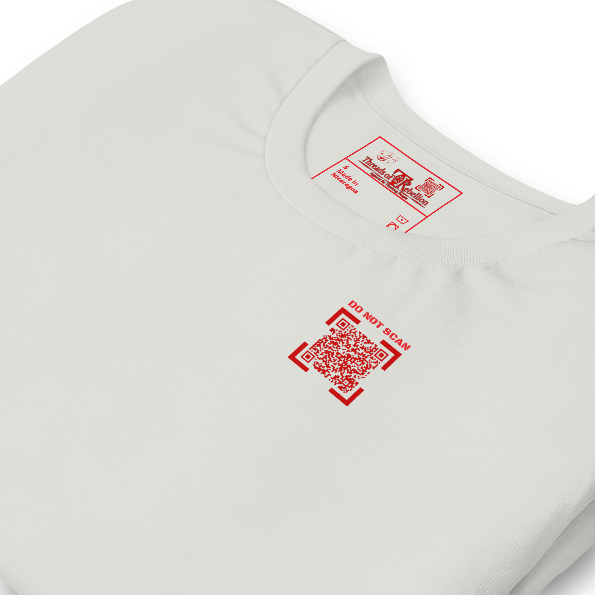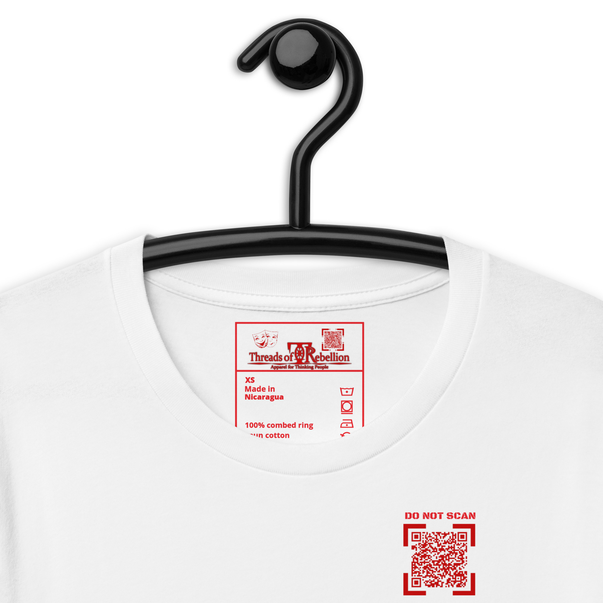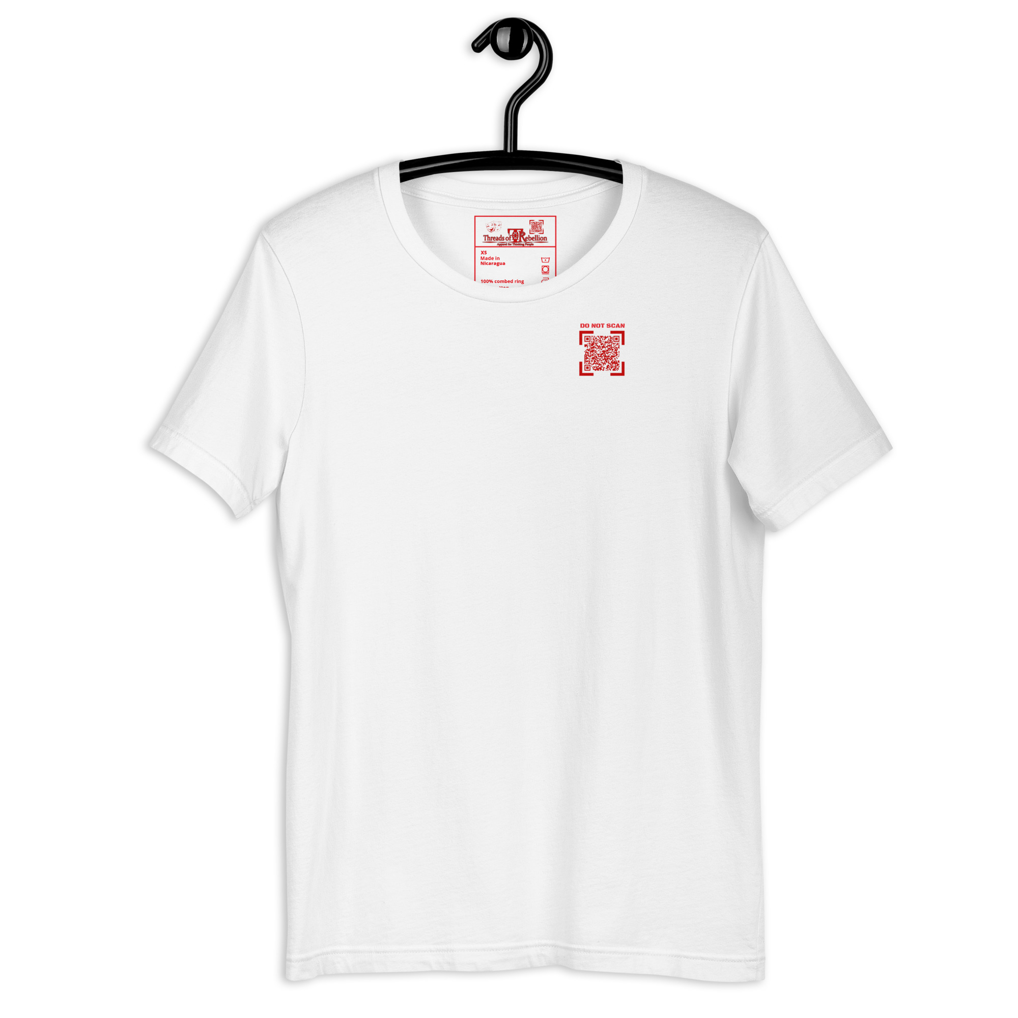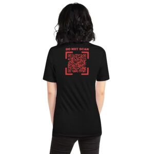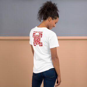WARNING: Item contains potentially alarming messaging! QR Codes in our interactivewear section are LIVE and may encourage public scanning, so please purchase and use items with caution. QR Code links are also subject to change and may not continuously link to originally advertised messaging. Our intent is to maintain the original content, however, if complications outside of our control arise, content/links may no longer function as intended.
