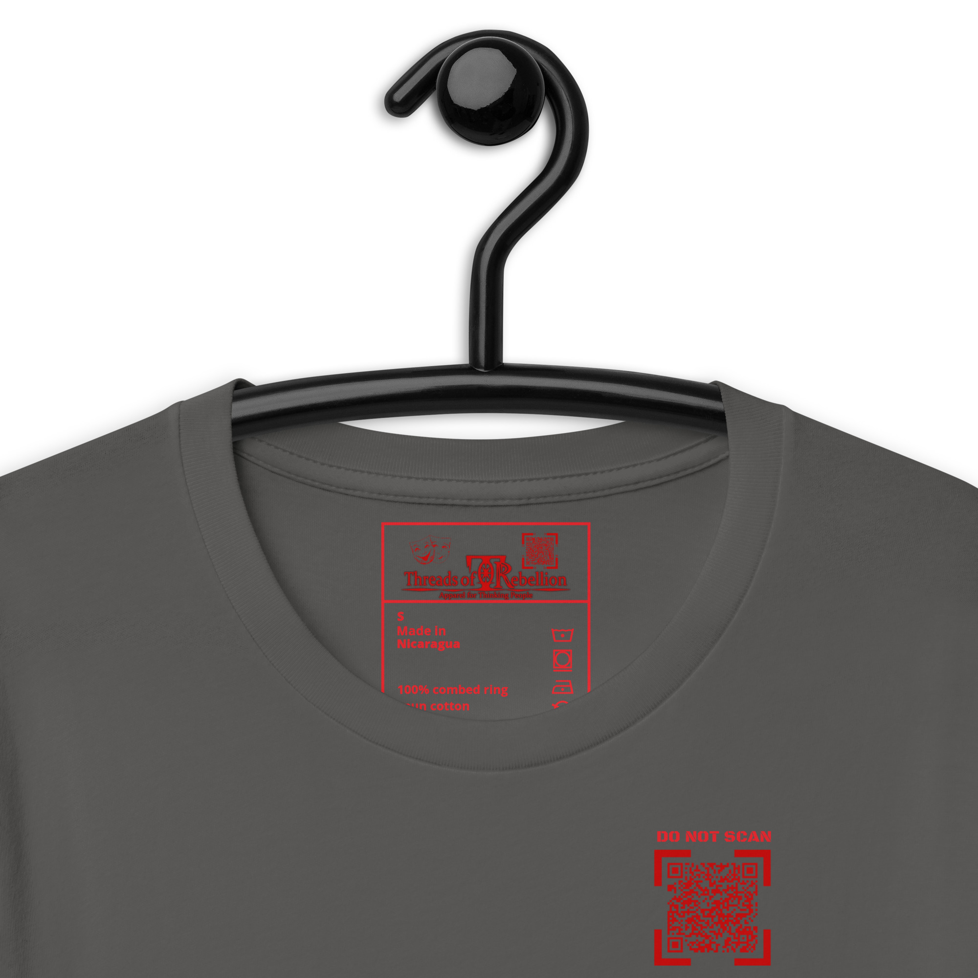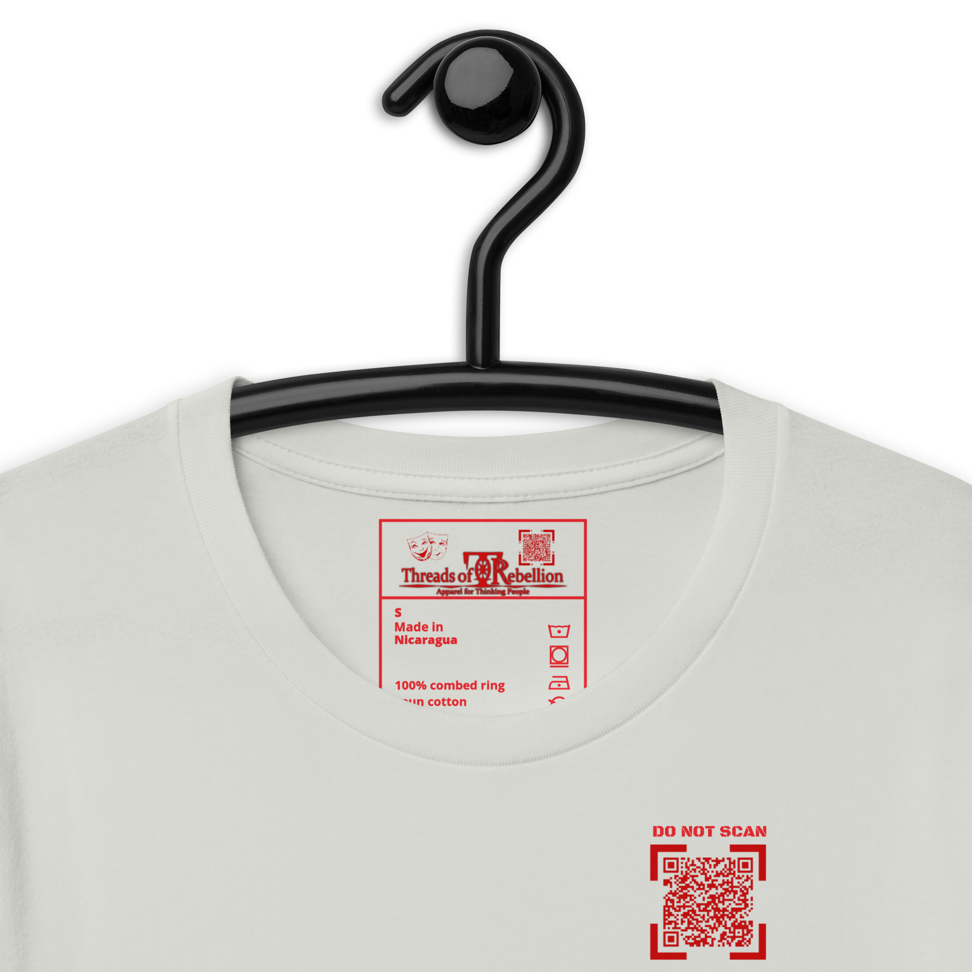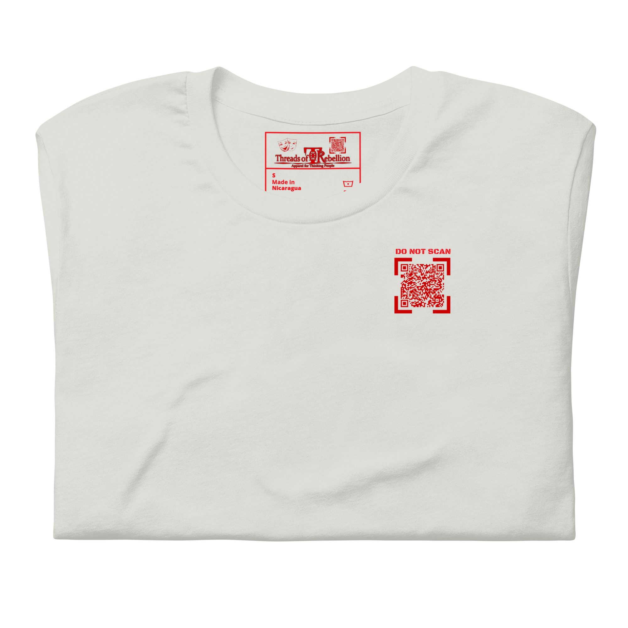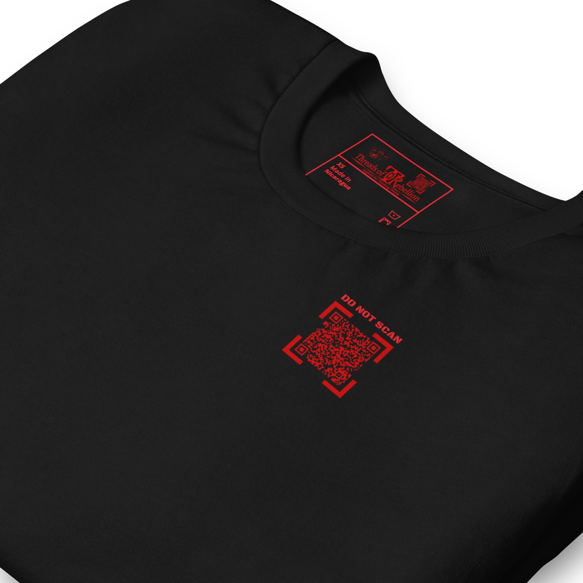 WARNING: Item contains potentially alarming messaging! QR Codes in our interactivewear section are LIVE and may encourage public scanning, so please purchase and use items with caution. QR Code links are also subject to change and may not continuously link to originally advertised messaging. Our intent is to maintain the original content, however, if complications outside of our control arise, content/links may no longer function as intended.
